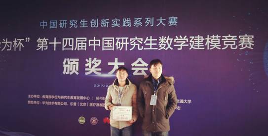 12月16日,“华为杯”第十四届中国研究生数学建模竞赛颁奖大会在西安交通大学举行。我校参赛队在本次比赛中荣获全国一等奖1项,二等奖1项,实现了此次赛事全国获奖零的突破。全国一等奖参赛队指导教师——机械工程学院汪超老师和参赛队长2016级机械工程专业硕士研究生舒军勇同学参加了颁奖大会。