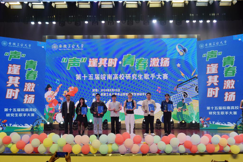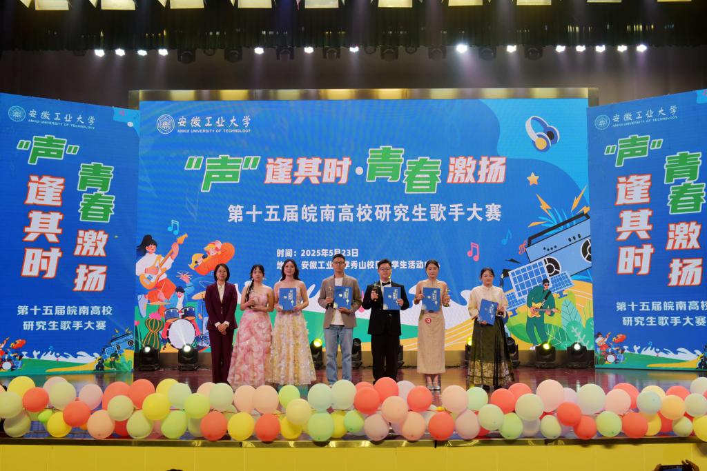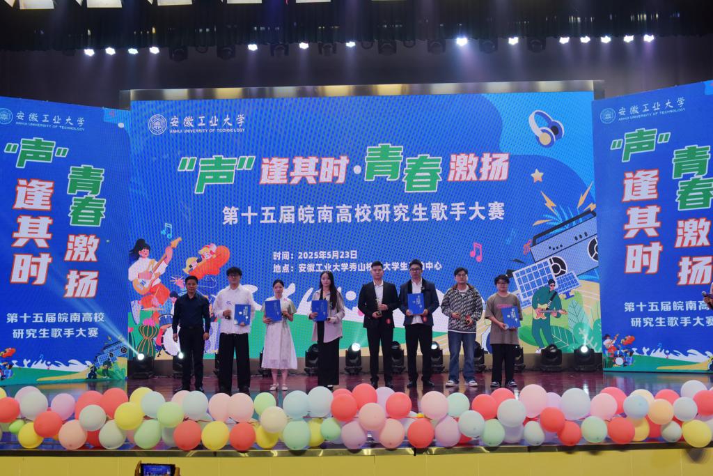 本次比赛以“‘声’逢其时,青春激扬”为主题,5所参赛高校择优选拔推荐15组选手入围决赛,评委根据选手的歌唱技巧、音色音准、舞台表现力等方面进行综合评分。参赛选手们凭借精湛的演唱技艺、独特的音乐风格以及卓越的舞台表现力,赢得了现场如潮的掌声与喝彩。皖南医学院王泽昊、安徽工业大学赵飞龙、安徽工程大学鲍鸣、陈泽龙、安庆师范大学刘浩然、安徽师范大学黄小甄获一等奖,皖南医学院吴文婧等10位选手获二等奖。