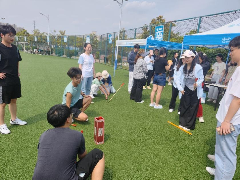 投壶问心:甩掉负面情绪。选手们需站在投掷线外,向壶中投掷箭矢,同时喊出负面情绪词(如“焦虑”“孤独”)。投中且情绪词不重复方可得分。该环节让同学们通过传统游戏的方式帮助学生以充满仪式感方式宣泄情绪。