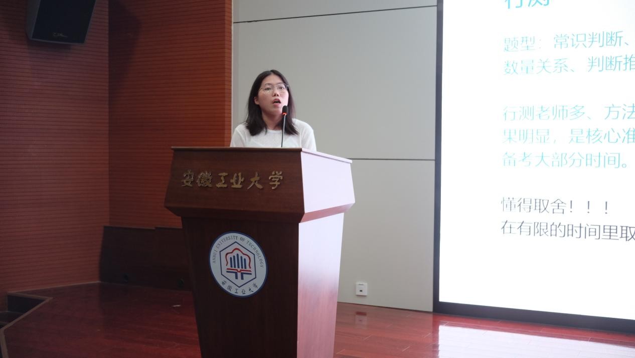 曾多次参与国家级、省部级科研项目,并发表多篇SCI论文,同时在统计建模大赛中屡获佳绩的2022级数量经济学专业硕士研究生陈敏同学,以《考公经验分享》为题,结合自身经历,生动剖析了选岗策略、学习时间规划,以及笔试和面试环节的备考心得,为在场的同学们呈现了一场精彩的备考指导。