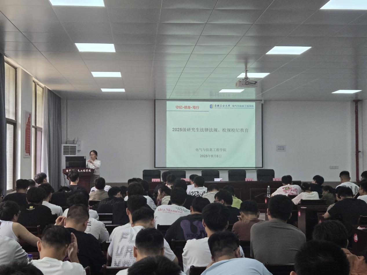9月8日上午,学院在电气楼113室召开2025级研究生新生开学典礼暨入学教育。学院领导丁忠利、程木田、孔洋波、李飞、张前进等出席开学典礼,学院科研秘书、研究生辅导员、高年级优秀研究生代表及全体2025级研究生新生参加开学典礼,学院科研副院长李飞主持。