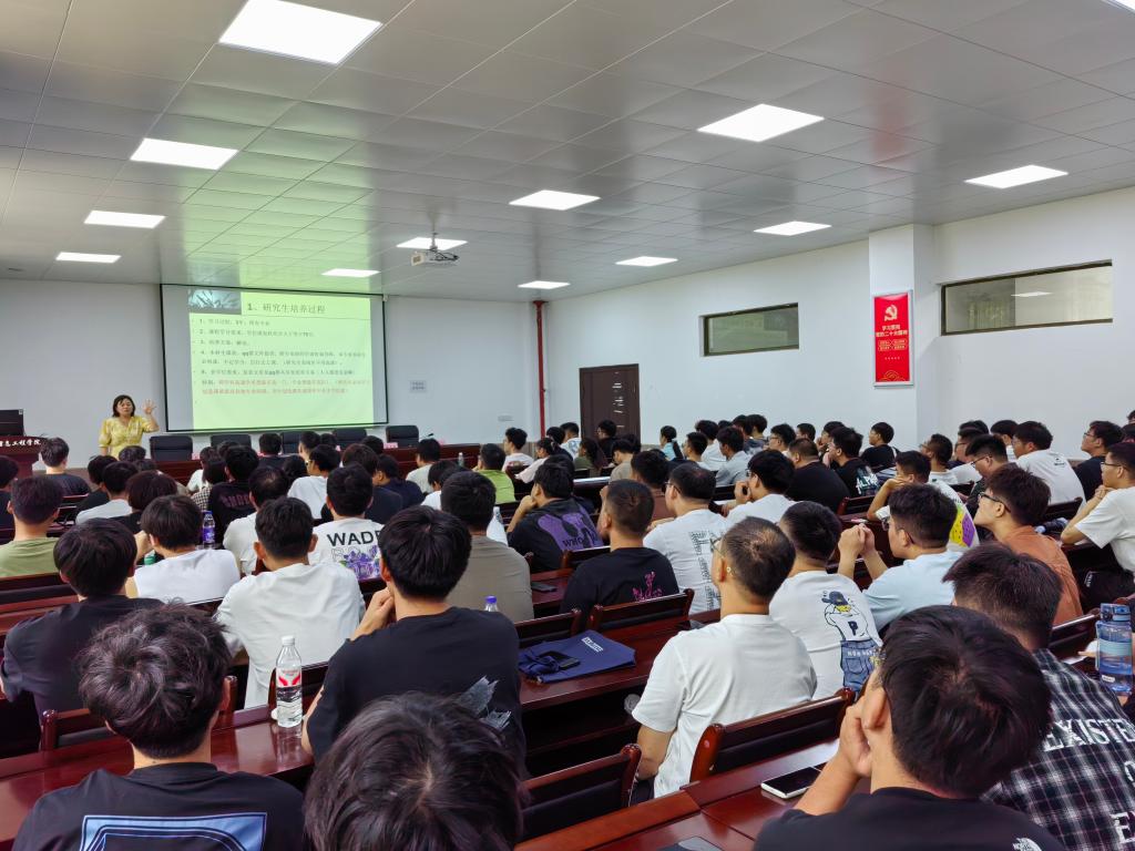 学院副院长(主持工作)程木田从校史院情、师资力量、人才培养、学科建设、科研成果等方面介绍了学院的历史沿革及发展现状,鼓励研究生们既要沉下心坐“冷板凳”,在导师指导下深耕专业领域,以钉钉子精神攻克技术难题,力争发表高水平论文、申请发明专利;也要敢于跳出“舒适区”,主动对接国家和社会战略需求,以行胜于言的作风践行科研初心,在专业领域的星辰大海中乘风破浪,成长为有理想、敢担当、能吃苦、肯奋斗的新时代研究生,为学院续写辉煌、为国家科技自立自强贡献青春力量!会上,副院长孔洋波、李飞、张前进还分别围绕理想信念、思想道德、遵纪守法、心理健康、安全事宜、防范诈骗、学术规范等方面与研究生们做了进一步交流。高年级优秀研究生代表羊卿分享了自己的科研经验与心得体会。科研秘书李清莲讲解了研究生培养过程、各专业培养方案、课程教学管理办法、文章类型判断、选课流程等相关事宜。辅导员张敏从安全稳定、日常管理、校规校纪、评奖评优等方面进行详细阐述,并结合案例提出重点要求和重要提醒。