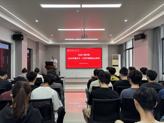 9月29日,冶金工程学院于秀山校区冶金楼南302会议室召开“国庆、中秋”假期研究生教育管理年级会。学院研究生辅导员从俊强、吴巍以及2024级全体研究生参加了此次会议,会议由从俊强主持。