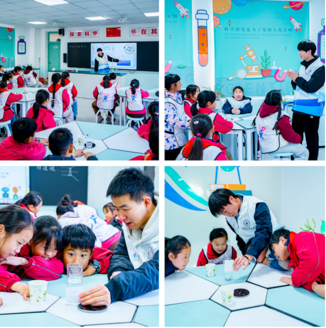 12月8日,微电子与数据科学学院“数理行知”科普志愿队携手花山区金家庄街道“幸福花花”服务项目,走进新工房小学,以“光的折射”为主题开展科普活动。