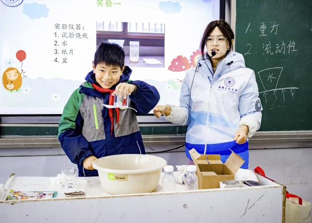 12月22日,安徽工业大学微电子与数据科学学院“数理行知”研究生科普志愿队再度携手马鞍山市少年宫,走进马鞍山市丹阳中心学校,开展以“神奇的大气压”和“会跳舞的豆子”为主题的科学启蒙课。