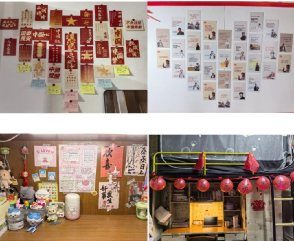 活动期间,各参赛宿舍紧扣“红色文化”核心主题,将理论认同与创意实践深度融合,精心打造特色宿舍文化展示。既体现了整洁规范的宿舍管理,又展现了富有创意的宿舍文化与团结协作的精神风貌。