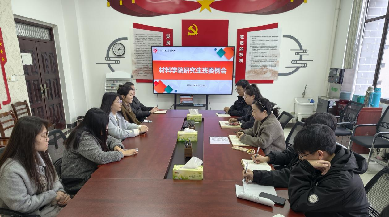 3月20日下午,材料学院在材料南楼405召开2026年春季学期研究生班委工作例会。会议由研究生辅导员张佩佩主持,各年级研究生班委全员参会。