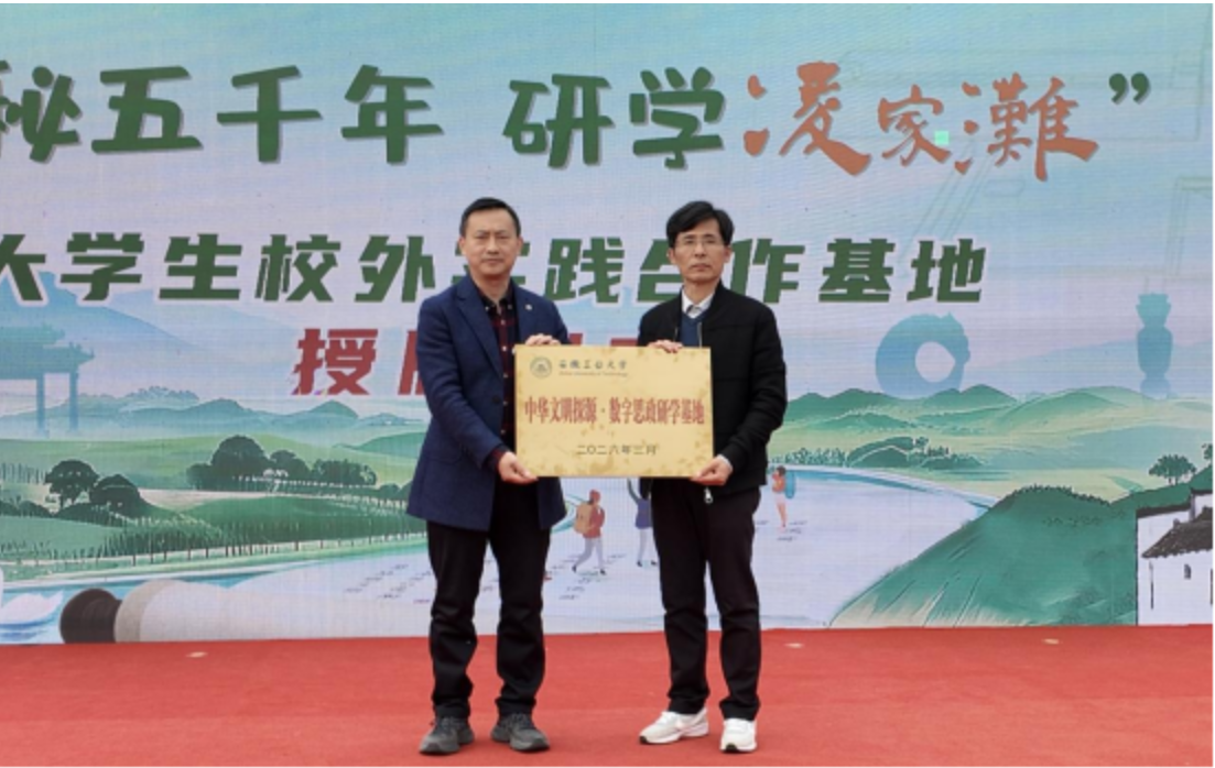 本次活动由中共含山县委宣传部指导,含山县凌家滩遗址管理处、含山县文化旅游体育局、运漕镇、铜闸镇、陶厂镇人民政府联合主办。启动仪式上,林忠心副院长代表学院,向凌家滩遗址博物馆授予“中华文明探源 数字思政研学基地”牌匾,这是继双方签订省级“大思政课”实践教学基地、教师研修基地后的又一合作平台,标志着我院与凌家滩国家考古遗址公园的校地合作迈上新台阶。同时也进一步丰富学院立德树人重要育人载体,搭建我校开展中华文明探源成果育人实践的新平台,为拓展地域特色文化育人实践提供了坚实支撑。